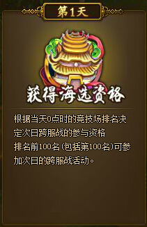 现在,就来说说跨服战的资格吧!跨服战可不是所有人都可以参加的,只有各区服排行榜前100的玩家有机会参与!也就是说,每个区只会有100个人参加~名额非常的稀少!据说还有可能动态缩减。所以请排行榜前100的玩家一定要珍惜这个机会哟~