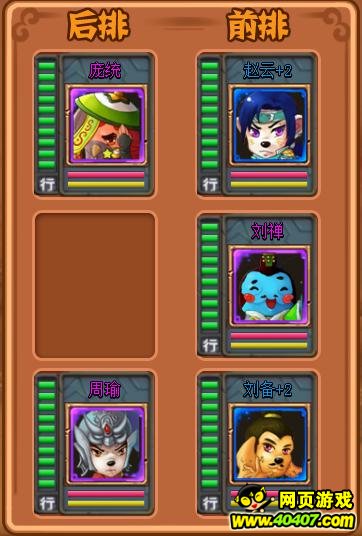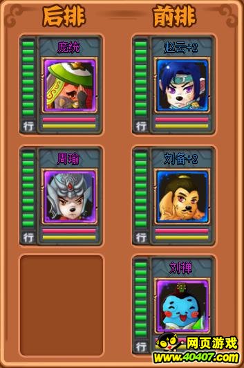 这个阵型主要是放对方有横排技能武将(庞统、太史慈等),缺点就是输出比较分散,如果对面阵容可以奶起来,就很容易崩盘。