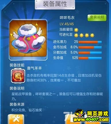 【喜气羊羊】:击杀敌机友概率回复27点生命值,且增加战机受伤隐身时间100%,效果唯一,不可叠加