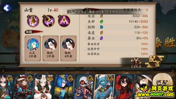 至于阴阳师这一块带盾晴明或者封印,预知的尼姑,按式神自己的特点来中其余的属性点,在开局的时候阎魔要做到的就是封印对面妖琴或者阎魔,然后用妖琴来拉条妖刀开大招干对面输出,假如对方有日和坊,就拿山童做为二号位补控制