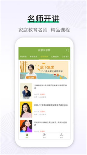 新家长学院是一款在线学习很方便的软件,软件上有很多关于的育儿的文章和课程,通过软件你可以获得更多的知识,软件上有多种课程可以去学习,还有专业的讲师在线讲解,非常好的学习资源,可以更好的去了解孩子的想法,更好的去教育孩子。