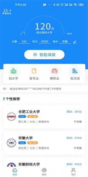 1.填写您的高考成绩。软件会自动将您推荐给合适的大学,并为您提供录取的机会。