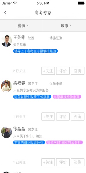 高考之后就是要面临的填报志愿的流程了,相信很多人都会有这样的疑虑,就是要如何选择院校和专业,这款软件就可以帮助你,让你顺利完成报考,在线有很多老师,有任何不懂的问题都能及时请教老师。
