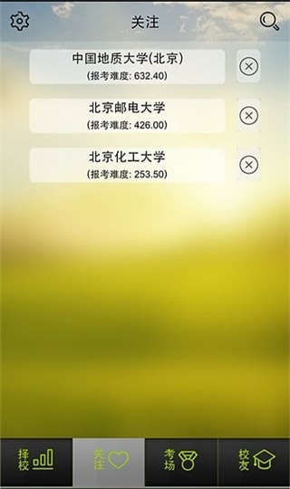 这款软件上的数据都是很权威的,在这里你可以随时了解报考的信息,看看大家都选择了什么专业,也能通过多种分析的渠道,帮助你选择适合你的专业,用户可以通过软件来查找学校,可以更加准确的去了解学校。