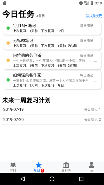 这款软件对于学生来说非常的方便,可以通过拍照的方式将你的笔记记录下来,通过线上整理,更方便随时随地进行学习,在这里可以快速浏览笔记内容,还可以查看之前没有过关的笔记进行着重复习,快速提升学习效率。