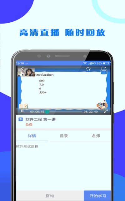 3.简单的操作和播放,使您可以轻松地在手机上进行高质量的学习。