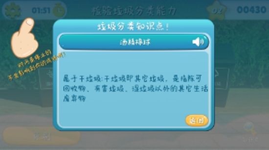 1.在3D场景交互过程中,用户可以在此处学习垃圾分类的知识并测试学习结果。