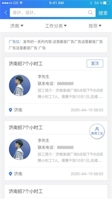 1.在这里,能够快速的发布各种招聘信息,有很多人去阅读面试。