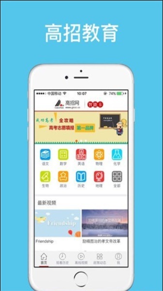 高招教育是一款教育学习类软件,专门为高三学生而定制的专属软件,能够帮助高三的考生提高成绩,考上自己心仪的大学,为考生解决更多关于升学上的问题,为学生们提供最新的关于升学资讯,还有各种高考真题,有需求的用户赶快来下载体验吧。