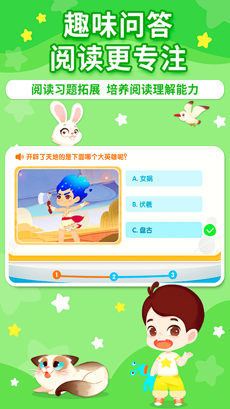 2.多个故事都可以自由的阅读,贴心的拼音帮助孩子更好的学习。