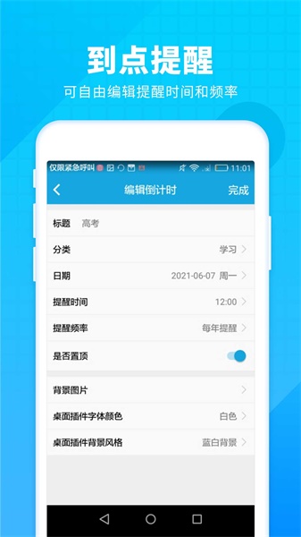 车车新高考倒计时可以说是学生必备的一款神器,这款软件的界面非常清新简约,使用方式非常的简单,可以带给你更棒的使用体验,同时还有超多的贴心功能可以使用,是你考试前必备的神奇软件,让你随时了解倒计时天数。