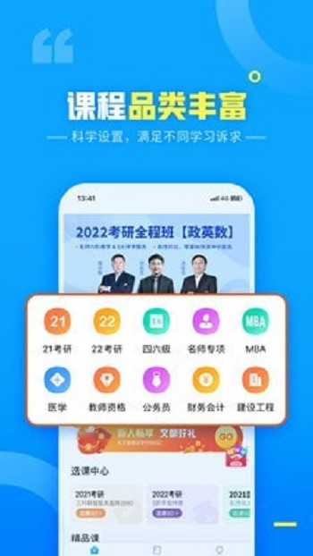 在这款软件当中,用户可以根据自己的需求选择购买,对于想要学习的课程可以免费下载观看,每一个视频讲解的都是非常详细的,可以对自己进行针对性训练,根据自己的学习水平制定一个适合自己的学习计划。