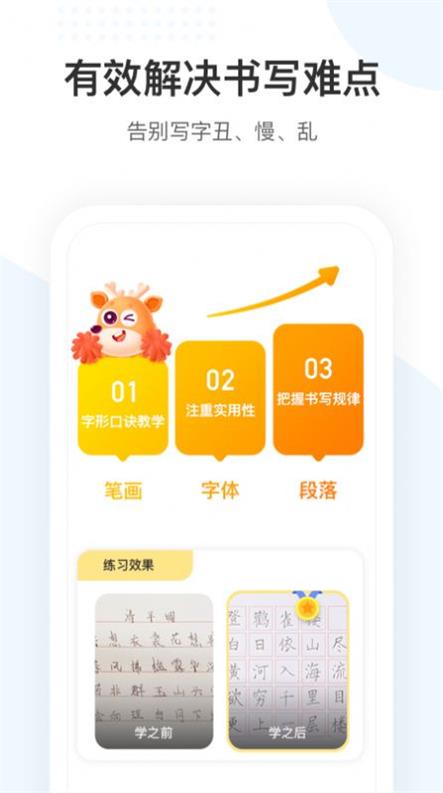 这款软件采用了卡通形式的画面,可以更好地调动孩子学习汉字的积极性,通过专业的学习可以解决书写中的难点,告别丑、慢、乱,专业名师1对1在线辅导,让每一位孩子都可以写出一手流利漂亮的汉字。