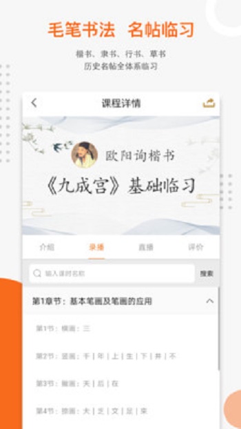 1.这里提供了优质的书法课程,用户可以在这里尽情的学习。