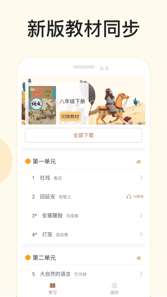 有声语文是很多学生都在使用的一款非常强大的学习辅助神器,软件的界面非常的简约,可以让你轻松上手使用,学习资源囊括了各个不同年级的学习内容,可以帮助你快速提升学习效率,提高学习成绩。