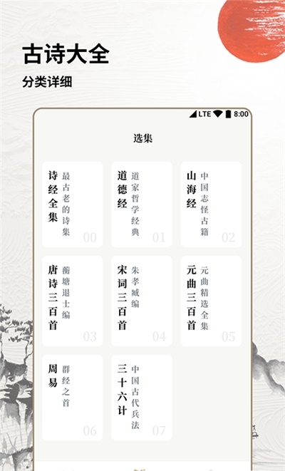 2.超丰富的诗词库,涵盖多种不同类型诗词资源。