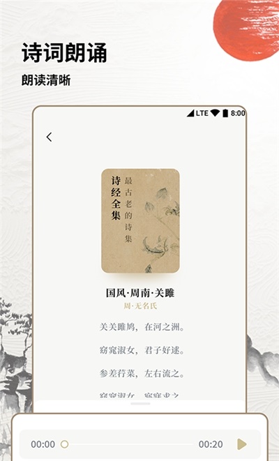学习古诗词强大的功能俘获了很多学生的心,这款软件为学生学习古诗词带来了更多便利,越来越多的小伙伴开始使用这款软件学习诗词,随时随地都可以通过软件阅读到精美的古诗,让你更轻松地体验古诗词的魅力。