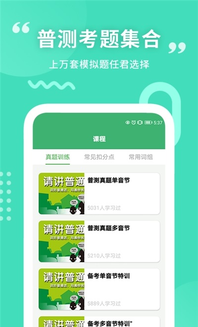 2.超专业的普通话等级测试系统让你轻松练习普通。