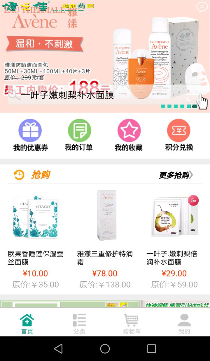 健之佳这款软件可以让你在上面看到各种不同的药品,让你能够买到更多的药品。你可以在软件上面随时随地的进行下单,就能够让自己一次性买齐所有的药品。软件对于各种不同的药品就有非常明确的分类,让你可以在上面根据自己的需求找到自己需要的药品。上面还包含了各种不同的居家百货商品,让你能够买到更多的生活用品。