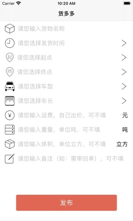 物资配送是一款使用起来非常便捷的物流运输服务平台,能够将货主和司机进行很好的连接,或者可以在这里进行快速的货源发布,司机可以在这里进行海量的订单接收,并且在线上就可以直接完成交易,整个环境非常的安全并且特别的容易。