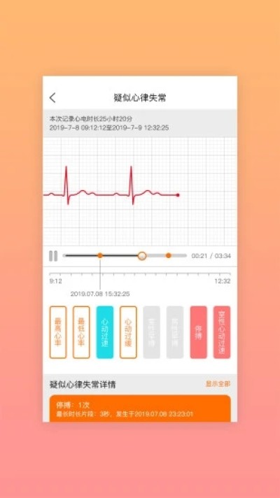 通过查看自己的健康数据,可以让用户更加全面的了解自己的身体状况,通过实时的监测用户的心电,呼吸和运动等数据,让用户来健康的养生,并且还提供了有关心脏方面的科普知识,可以让用户通过查看,来及时的调整自己的饮食习惯和运动方式。