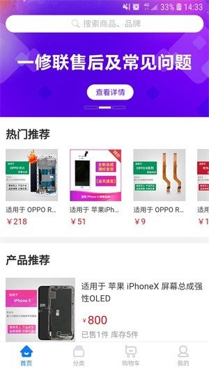 一修联这款软件可以让你在上面买到各种不同的零件,让你能够解决更多的零件问题。软件上面包含了各种不同的手机配件,可以满足你任何的配件需求。上面所有的商品价钱都非常的优惠,可以让你节省更多的费用,让自己能够买到自己需要的配件。这款软件的配送速度非常的快速,能够让你体验到更多的配送功能。