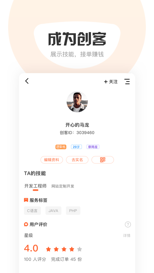 1.对于专业型人才而言,用户可以随时的在软件上进行接单,提高自己的额外收益。