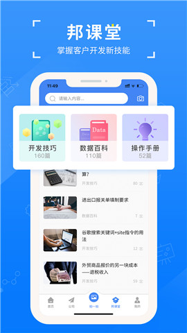 外贸邦的功能很是全面,拥有这款软件可以轻松进行在线业务管理,还可以学习到更多专业的知识,提升你的专业的,为你打造更棒的管理平台,满足不同用户的使用需求,带来更加便捷、高效的管理模式,是一款很不错的外贸数据分析平台,为你提供更多服务。