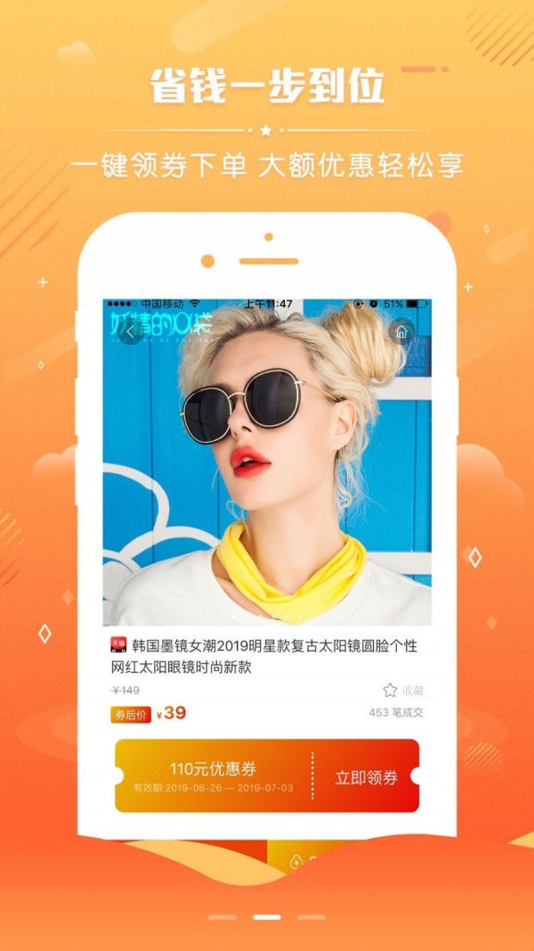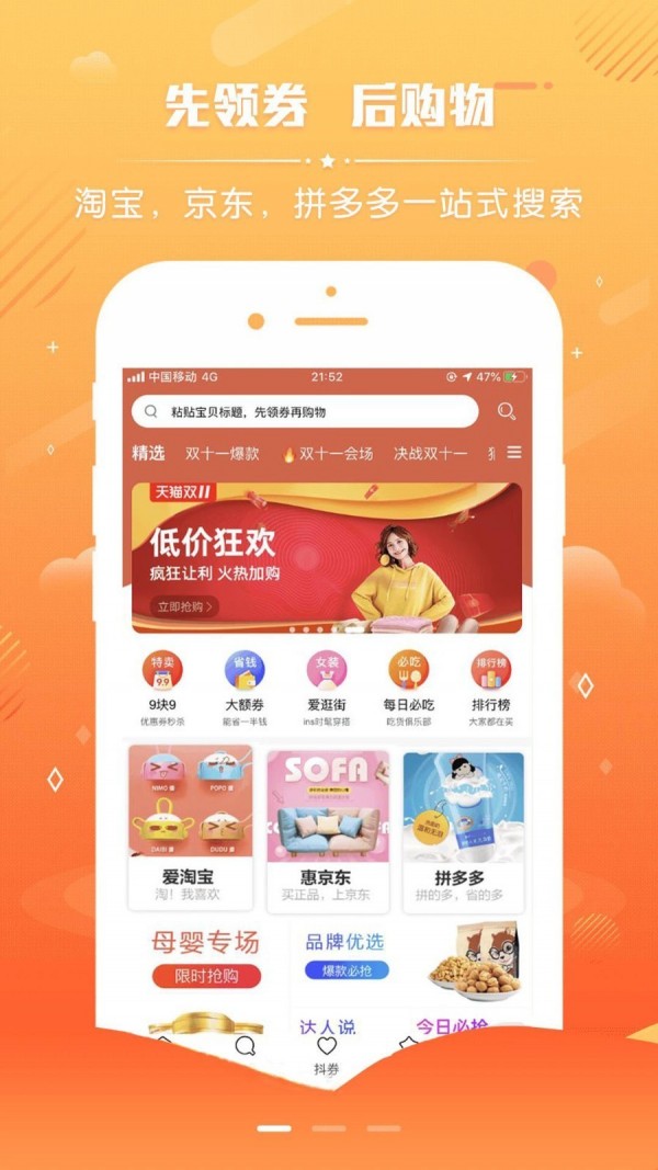 用户通过利用这个软件能够让自己购买到更多好用的商品,而且软件里面的一些商品也能够让用户轻松地领取优惠券,而且在购物过后,也可以让用户领取折扣红包,通过这样的方式,能够给用户带来更加良好的购物模式,也能够让用户享受到更多的贴心服务。
