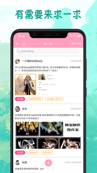 废猫是一款在线交易平台,如果你是二次元或者cosplay的爱好者,你可以在平台中卖掉自己的服装和道具,有超级多相同爱好的人,他们会在线进行挑选,所有的服装都要拍真实的图片,你可以及时的发布自己的订单,会有用户浏览,如果他们心仪的话,你们可以及时的沟通,达成交易。