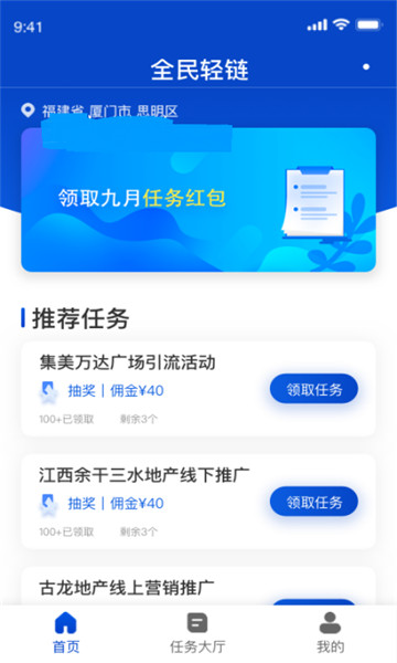 全民轻链是一款功能比较强大的线上兼职平台,在这款软件中所有的用户都可以轻松的查询到一些特别优质的网上兼职,大部分的网上任务都会不定时的推荐给你,让你实现了在不同时期都能够找到专属于自己的兼职任务,方便用户参与各种各样的兼职信息,平台中的所有任务信息都能够自由的进行领取。