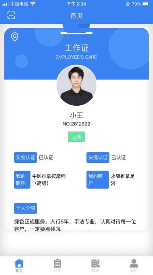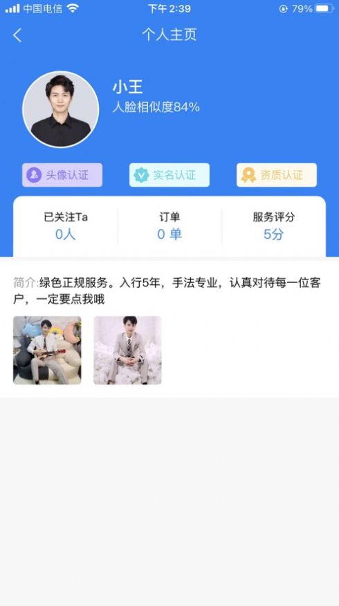 3.可以随时去查看到所有技师的个人基本资料能够去,查看到详细的介绍信息。
