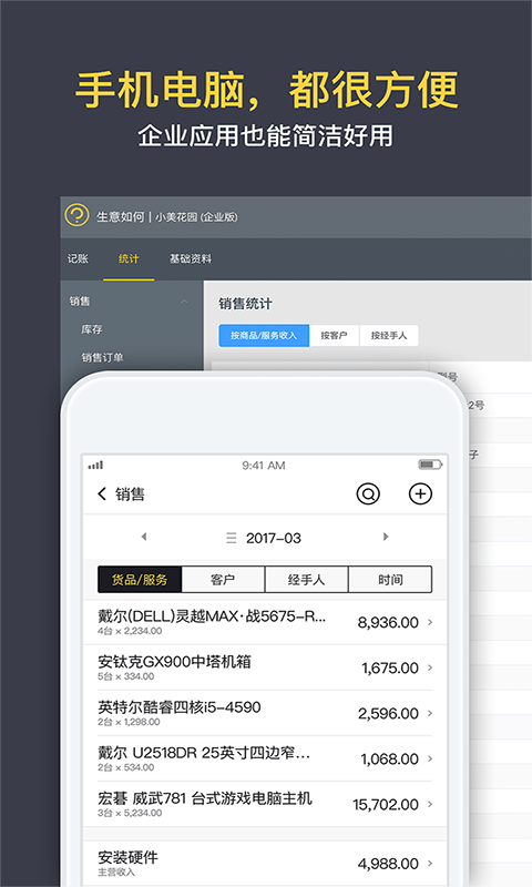 生意如何进销存它是一款非常好用的商品管理软件,在这个软件里面有非常好的进销存的管理,它能够给我们带来非常多智能化的产品,进销存管理服务也可以自动统计进行分析,能够让我们及时的了解到产品的销售以及库存状况,也能够让我们方便进行记录,代购我们非常好的数据体验。