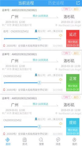 3.关注各种不同的运输寄件了解寄件的件数以及实时状态。