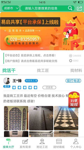 2.这款软件为更多的装修师傅和用人单位,提供了超多的便利。