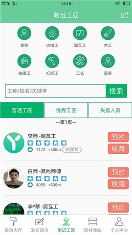 3.软件拥有一键搜索功能,可以快速的查找到附近的工匠师傅。