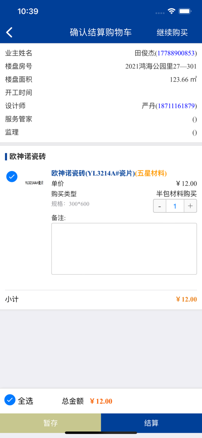 (3)用户可以将自己房屋的面积以及所用的材料输入到平台的清算购物车内,系统便会智能的统计、计算,非常的快捷。