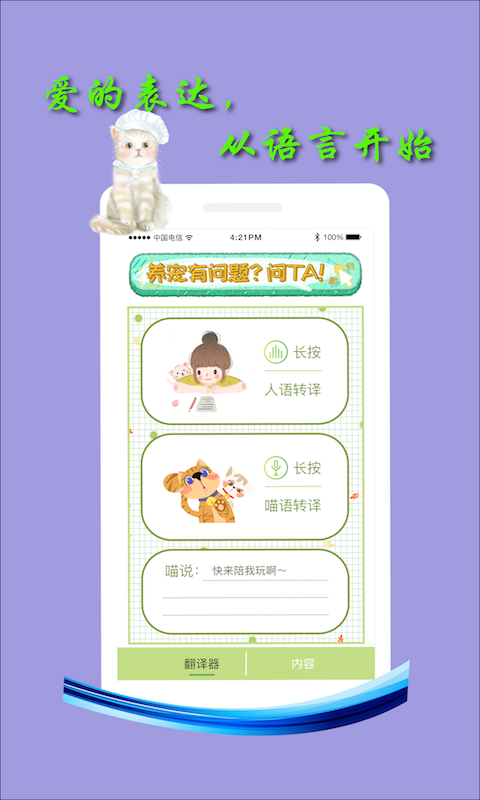 1.软件当中用户可以将自己的声音输入在平台上进行转换,让猫咪可以听懂你的意思。