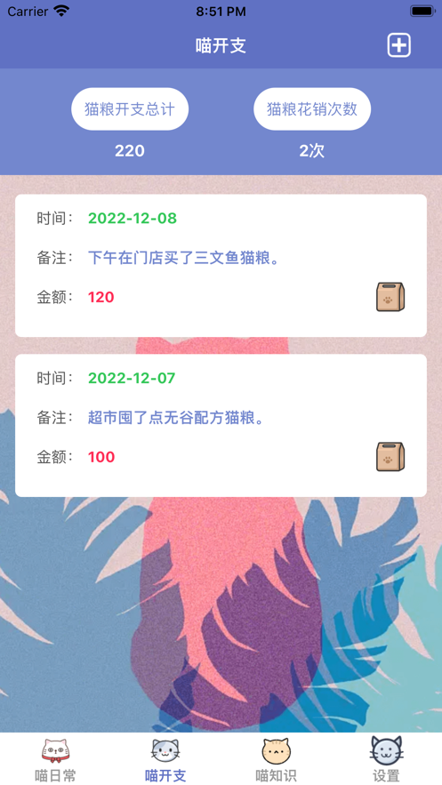 喵大人的日常是一款专门为一些家里养有猫咪的用户而推出的软件,用户通过这款软件可以记录与自己猫咪日常生活的点点滴滴,还可以记录猫粮的日常开支情况等,同时还有诸多的功能和服务,家里养有猫或者相关的爱猫人士可以亲自体验一下。