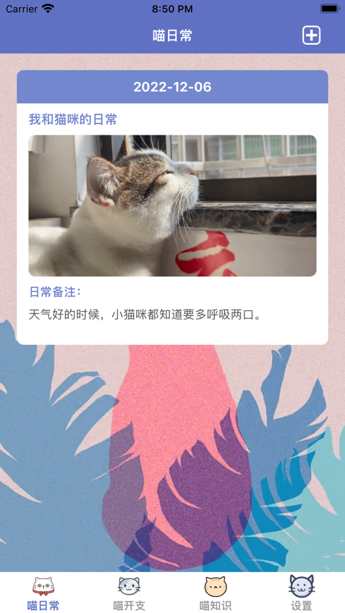 2.支持分享日常记录,用户可以通过分享与猫咪的日常,有可能收获一大批的粉丝哦。