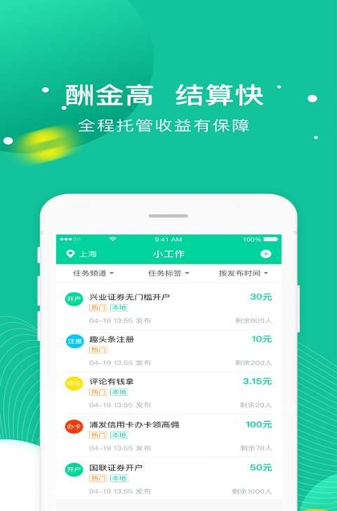 2、任务酬金平台托管,全程线上流程,结算及时、安全,收益有保障。