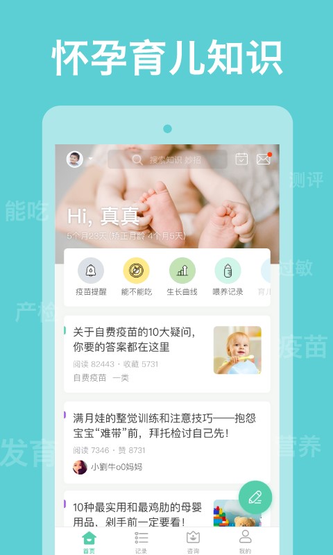 3.方便的记录,最简单的操作,记录婴儿的饮食,睡眠,排便和成长。