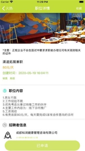 1.可以看到每个兼职工作的详细信息,包括工作要求,时间和内容等都很清晰。