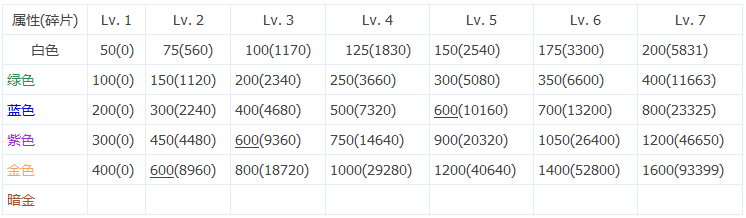对比两个表,一个升级得到碎片,一个降级得到碎片。结果已经很明显了。